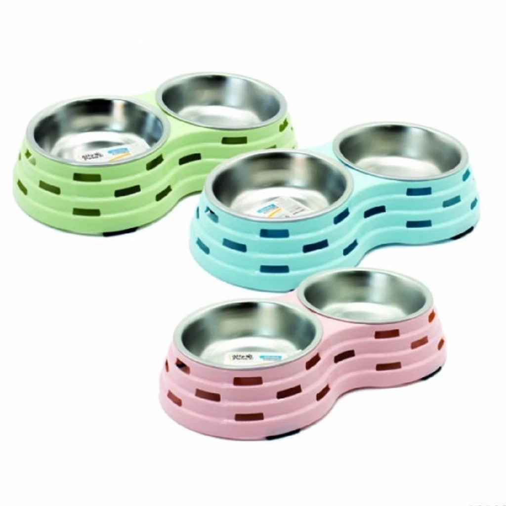 Renkli Kare Mama Kabı Çiftli Plastik Küçük