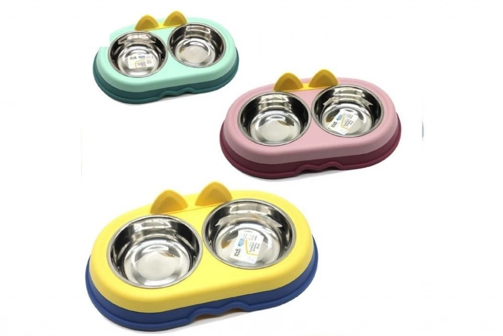 Renkli Kare Mama Kabı Çiftli Plastik Küçük