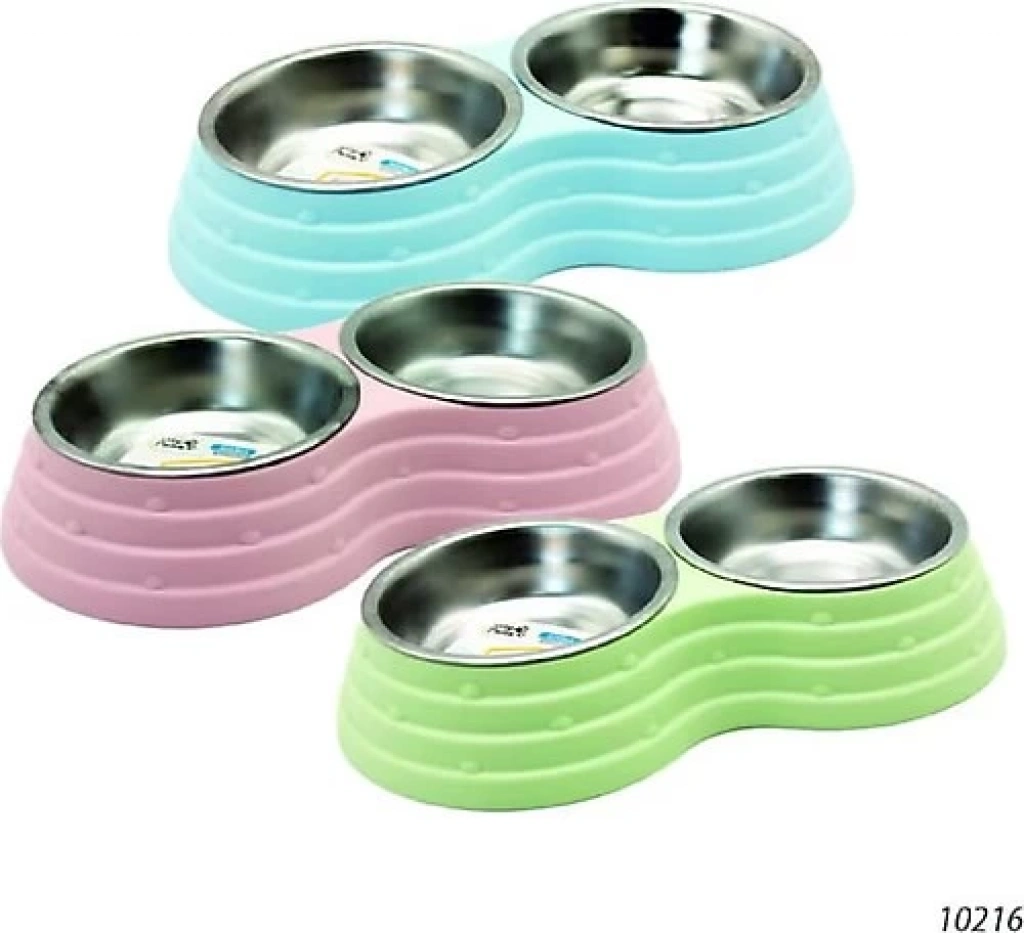Renkli Kare Mama Kabı Çiftli Plastik Küçük