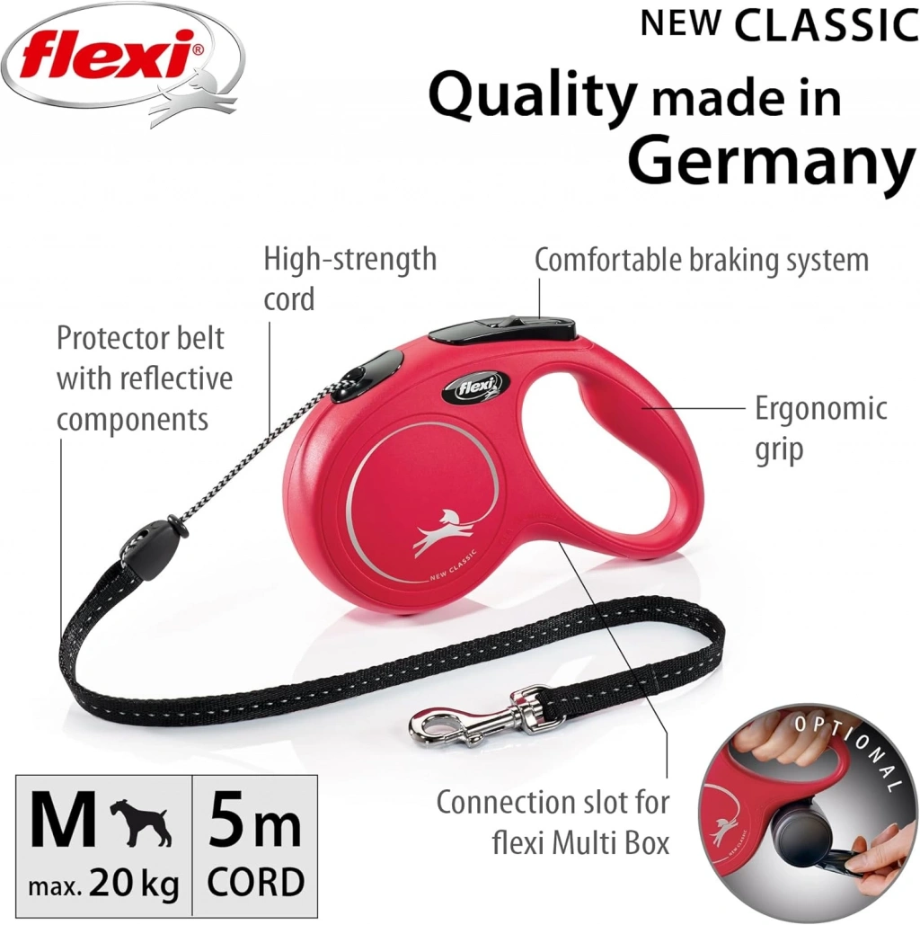 Flexi Classic Kırmızı Şerit Medium 5 metre Flexi Classic Şerit köpeğiniz ile yapacağınız yürüyüşleri konforlu hale getiren, köpeğinizi rahat kontrol etmenize yardımcı köpek gezdirme tasması çeşitlerinden birisidir. Tasma uzunluğu 5 metredir ve 25 kilo ağırlığa kadar köpekler için kullanıma uygundur. Özel tasarımlı çıkış ucu sayesinde tasma hangi yöne çekilirse çekilsin sıkışma yapmaz. Tasma kayışı sağlam yüksek mukavemetli malzemelerden üretilmiştir uzun yıllar kullanıma uygundur. Evcil dostunuzun sağlığı ve konforu düşünülerek üretilmiş köpek uzatma tasması çeşitlerinden biridir. Tasmanın tutamaç kısmı elinize oturacak tasarımı sayesinde oldukça konforlu bir kullanım sunar. Özel baş parmağınıza göre ayarlanan kontrol düğmesi ile tek bir tuşa basarak tasmayı serbest bırakabilir ve geri sarabilirsiniz. Sahip olduğu pratik kilit sistemi ile kullanımı oldukça kolaydır.