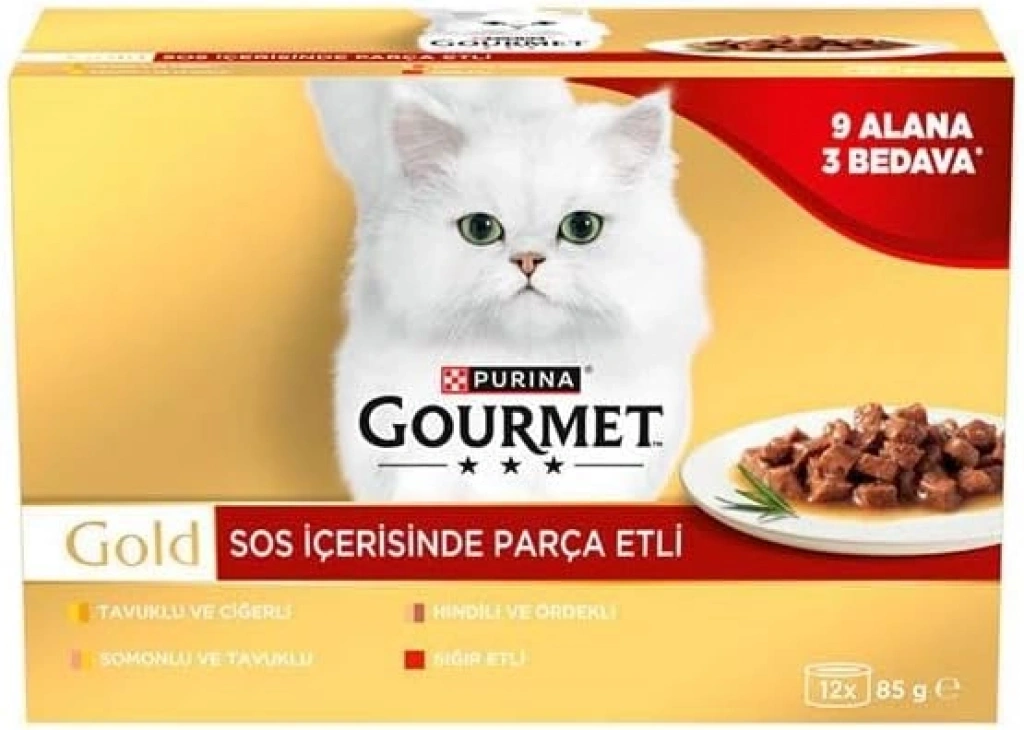 Gourmet Gold Soslu Parça Etli Karışık Çeşitli Yetişkin Kedi Konservesi 12x85gr (12 AL 9 ÖDE)