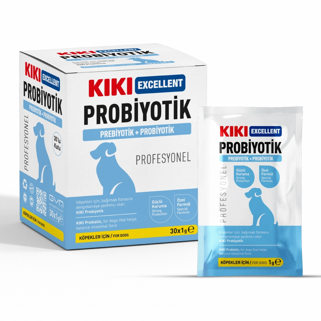 KIKI Excellent Köpek Probiyotik + Prebiyotik Saşe bağırsak florasını dengelemeye yardımcı olur.