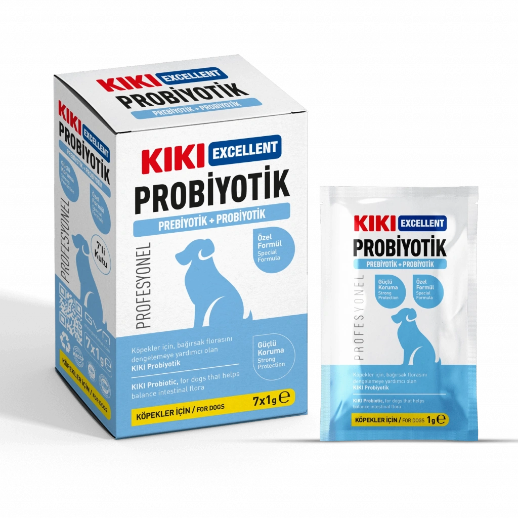KIKI Excellent Köpek Probiyotik + Prebiyotik Saşe, köpeğinizin bağırsak florasını dengelemeye yardımcı olmak için özel olarak formüle edilmiştir. Bu probiyotik toz, köpeğinizin sindirim sistemini desteklerken, genel sağlığını da korur.