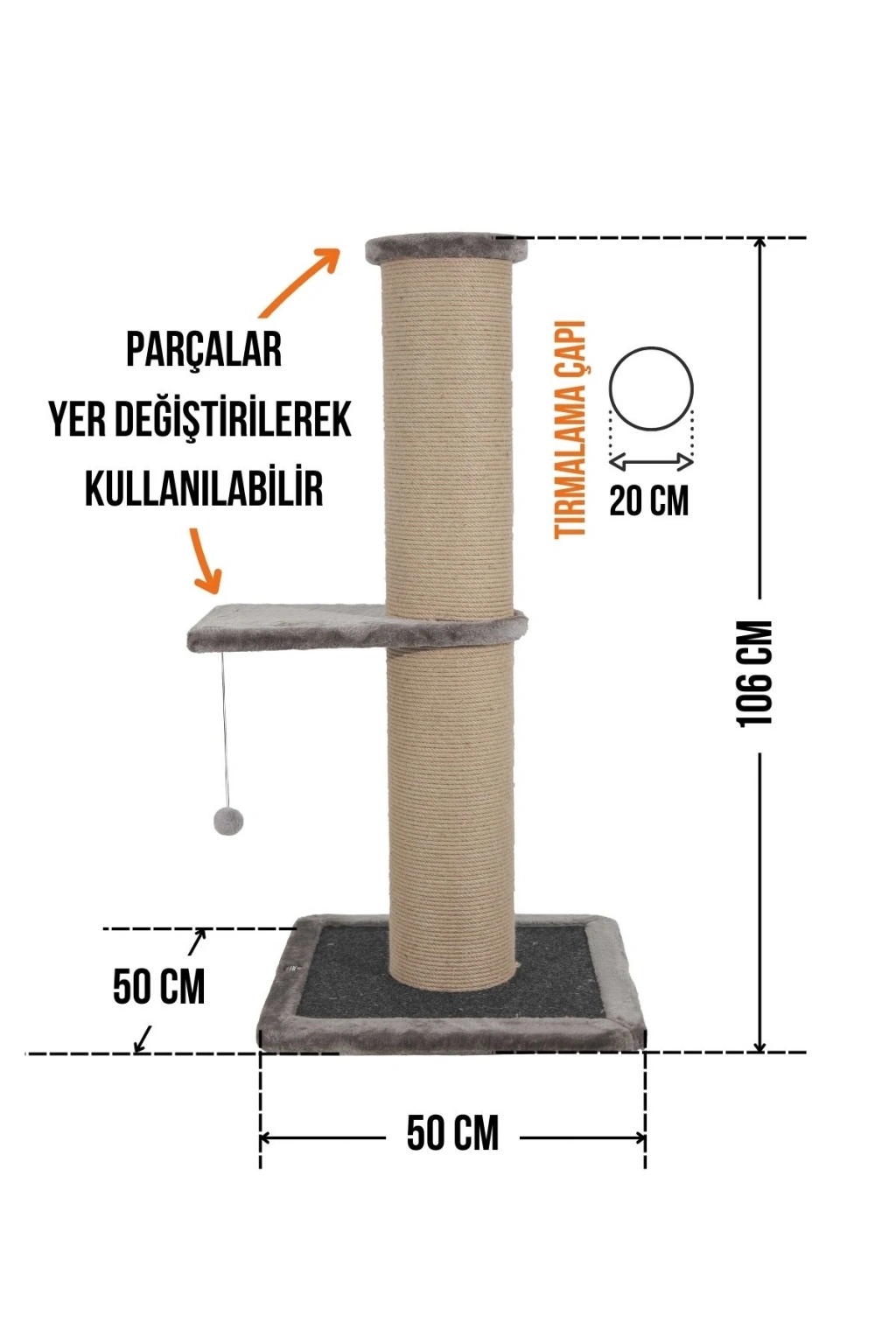 Tırmalama direklerinde kullanılan 6mm doğal jüt halat, masuralara her noktadan yapıştırılarak sağlamlık en üst düzeye çıkarılmıştır. Tırmalama direklerinin alt ve üst kapaklarında MDF kullanılmaktadır.