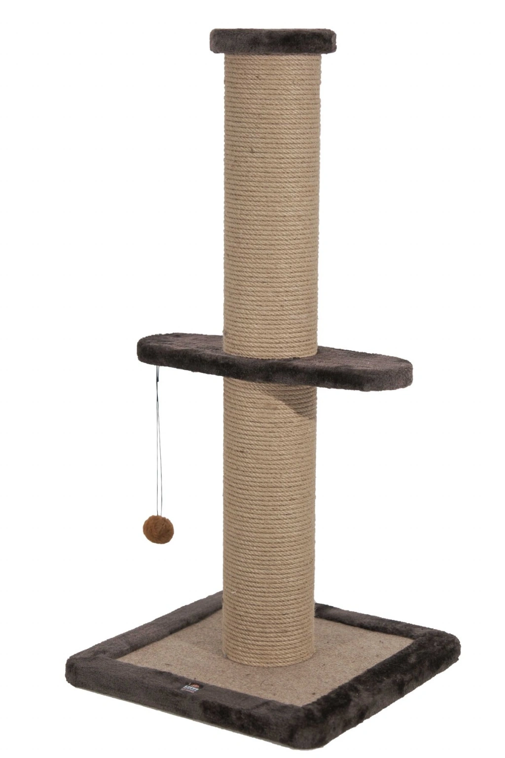 Tırmalama direklerinde kullanılan 6mm doğal jüt halat, masuralara her noktadan yapıştırılarak sağlamlık en üst düzeye çıkarılmıştır. Tırmalama direklerinin alt ve üst kapaklarında MDF kullanılmaktadır.