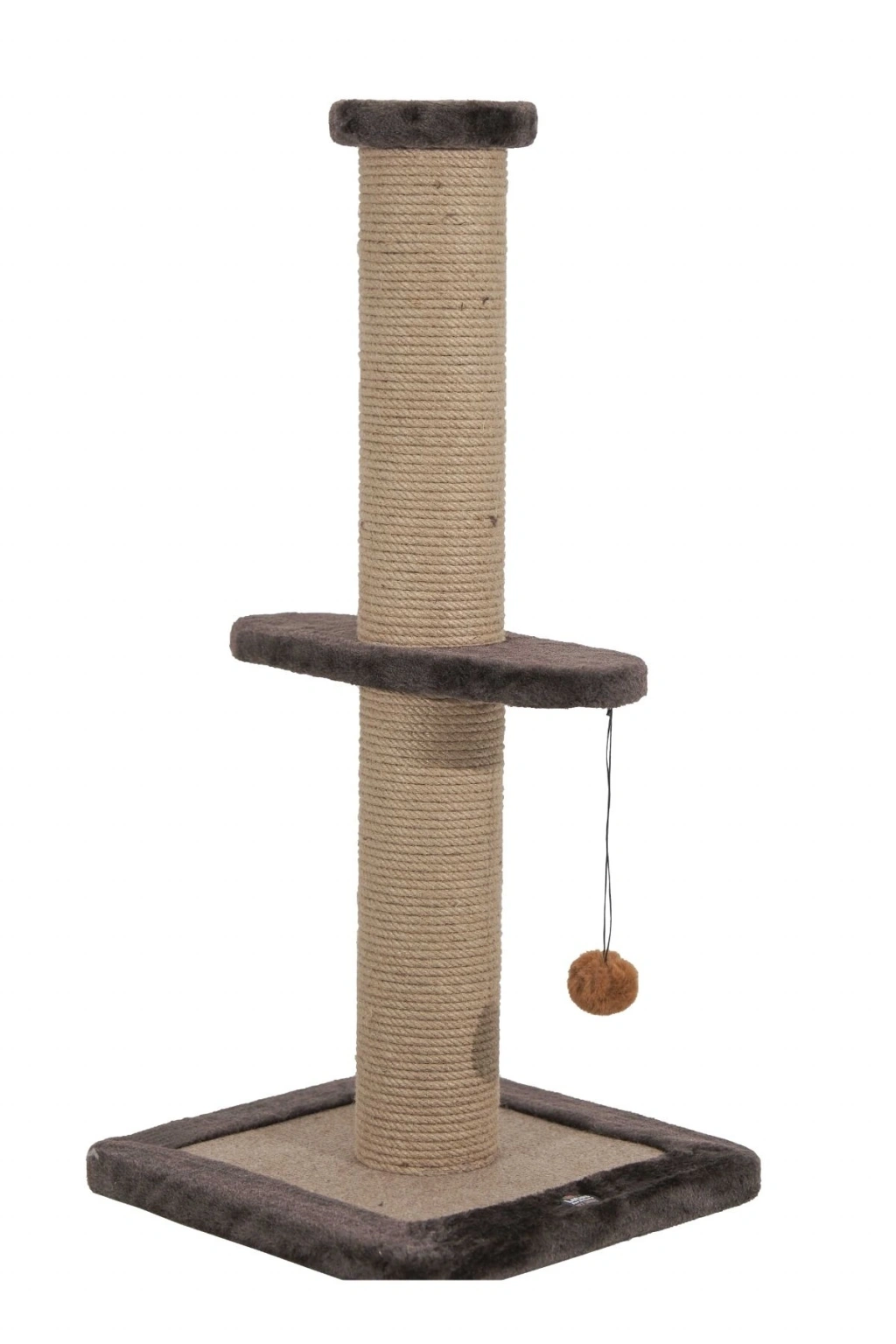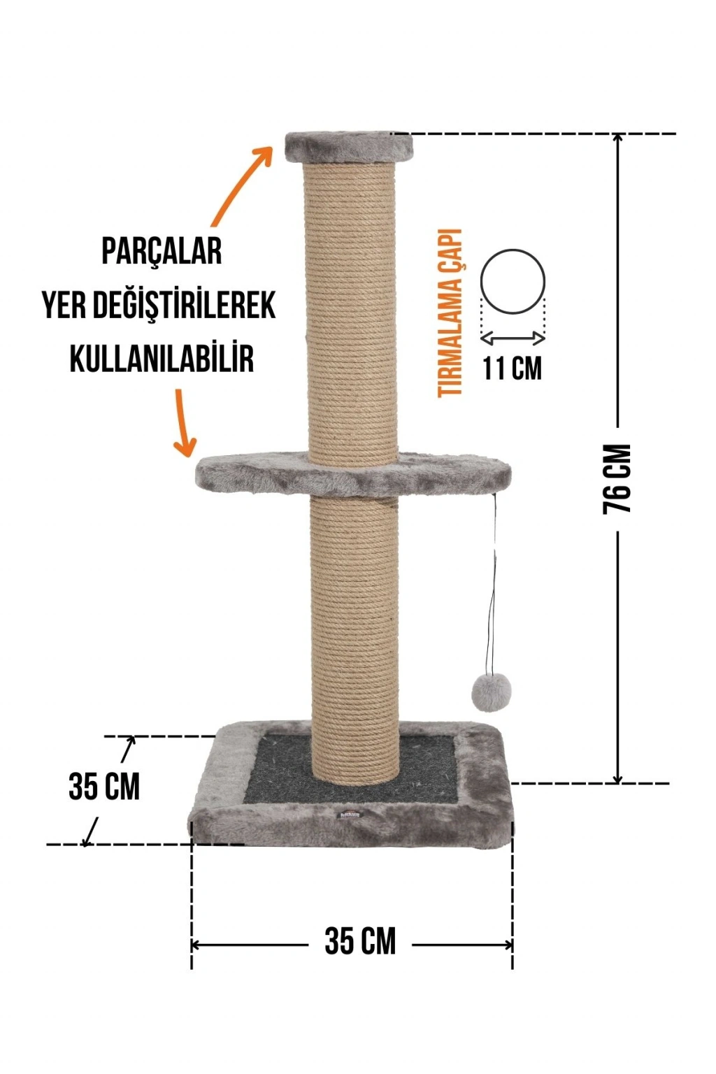 Tırmalama direklerinde kullanılan 6mm doğal jüt halat, masuralara her noktadan yapıştırılarak sağlamlık en üst düzeye çıkarılmıştır. Tırmalama direklerinin alt ve üst kapaklarında MDF kullanılmaktadır.
