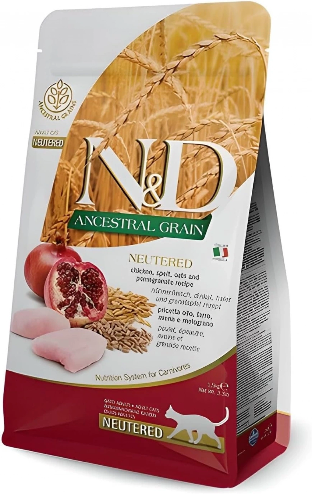 ND Düşük Tahıllı Tavuk ve Narlı Kısırlaştırılmış Kedi Maması 1,5 Kg