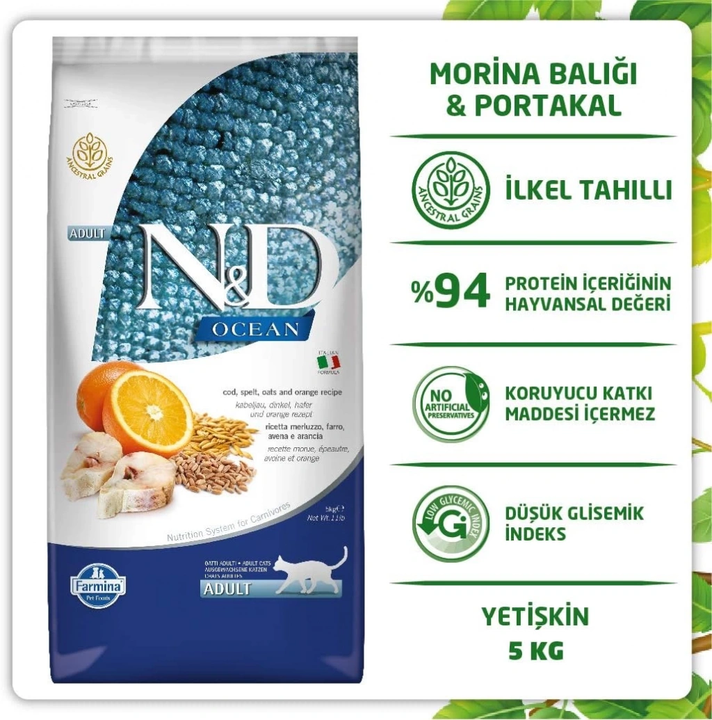 ND Ocean Kedi Maması Morina Balıklı ve Portakallı Düşük Tahıllı 5 Kg