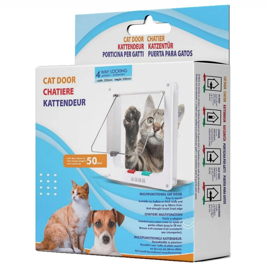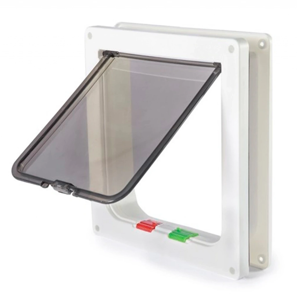 Dışarı çıkmayı seven kediler ve küçük ırk köpekler için 4 yollu non-toksit yapılı sağlam plastik malzedemen üretilen kedi kapısıdır.