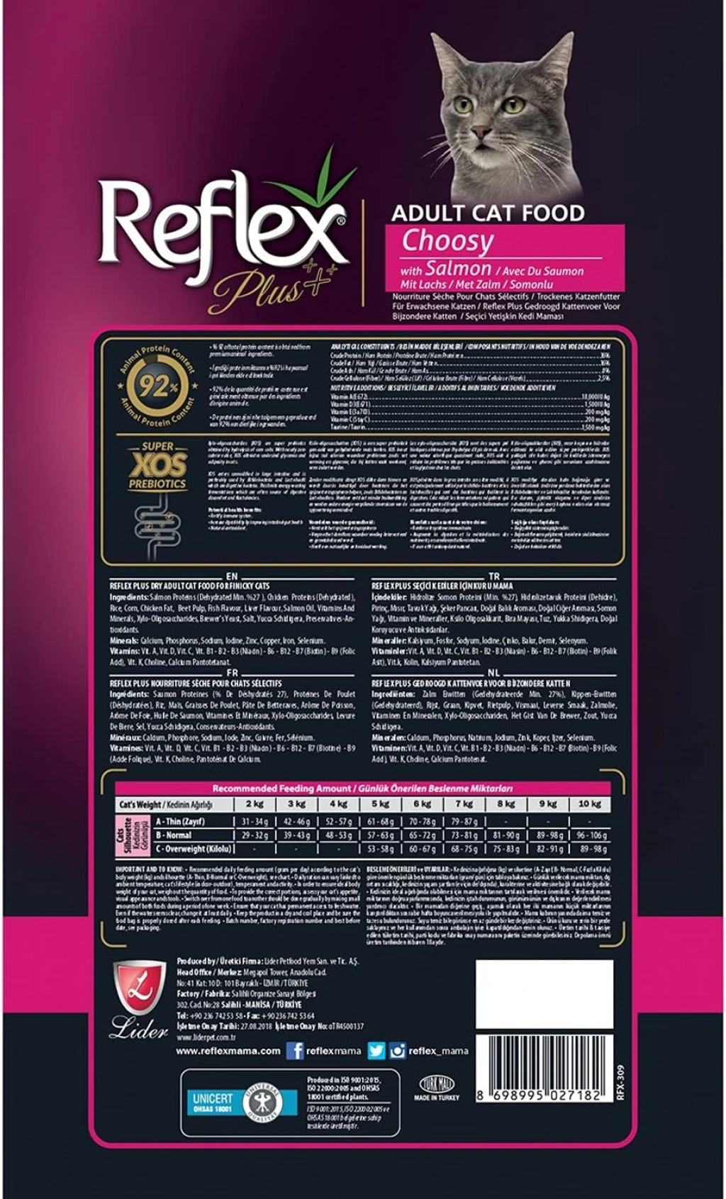 Reflex Plus Choosy, kedinizin sağlıklı bir yaşam sürmesi için gerekli olan birçok vitamin ve mineral içerir:
