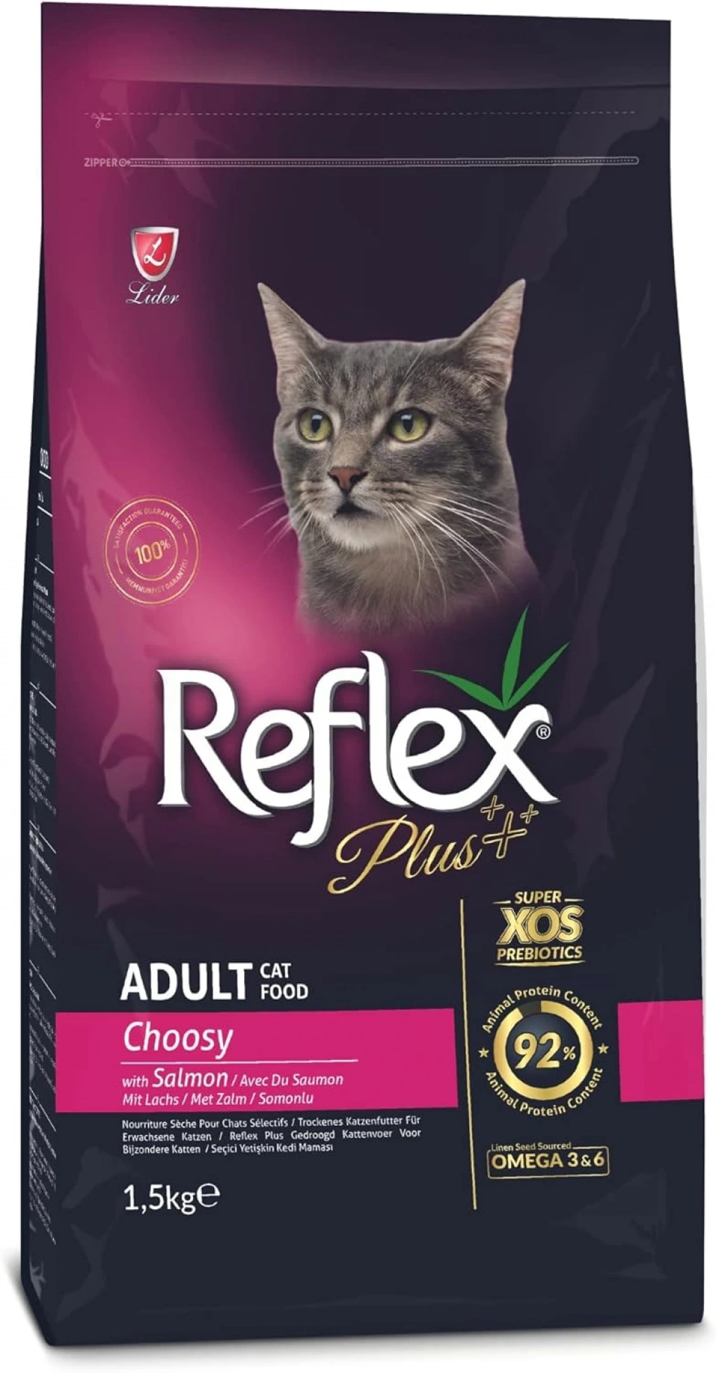 Reflex Plus Choosy Seçici Kediler için Somonlu Kedi Maması 1,5 Kg, seçici kedilerinizin sağlıklı ve mutlu bir yaşam sürmesi için gerekli tüm besin maddelerini içerir. Yüksek kaliteli içerikleri ve özel formülasyonu ile kedinizin günlük beslenme ihtiyaçlarını en iyi şekilde karşılar. Kedinizin sağlığını ve mutluluğunu güvence altına almak için Reflex Plus Choosy'yi tercih edin!