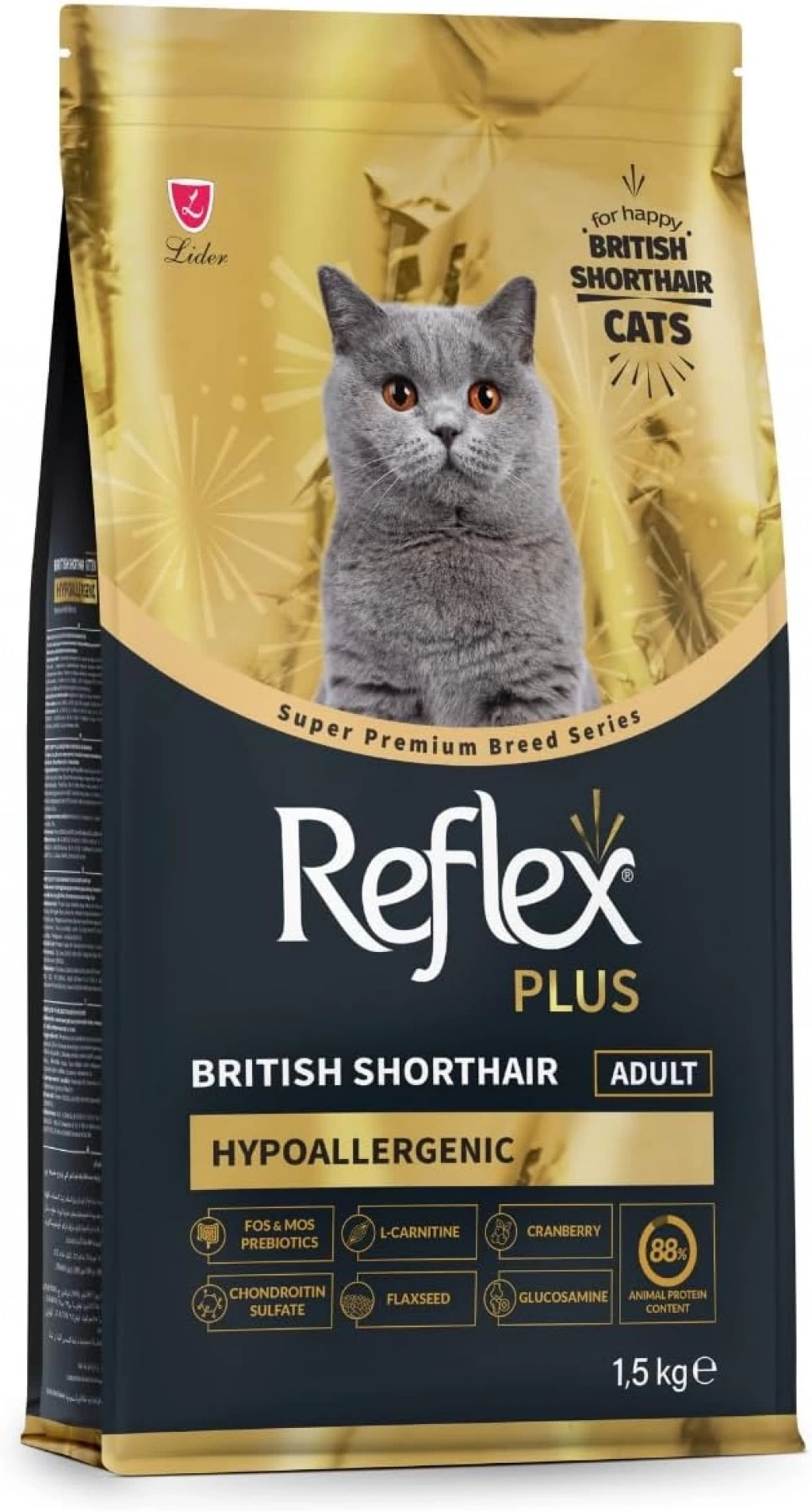 Reflex Plus British Shorthair Hipoalerjenik Tavuklu Yetişkin Kedi Maması 1,5 Kg