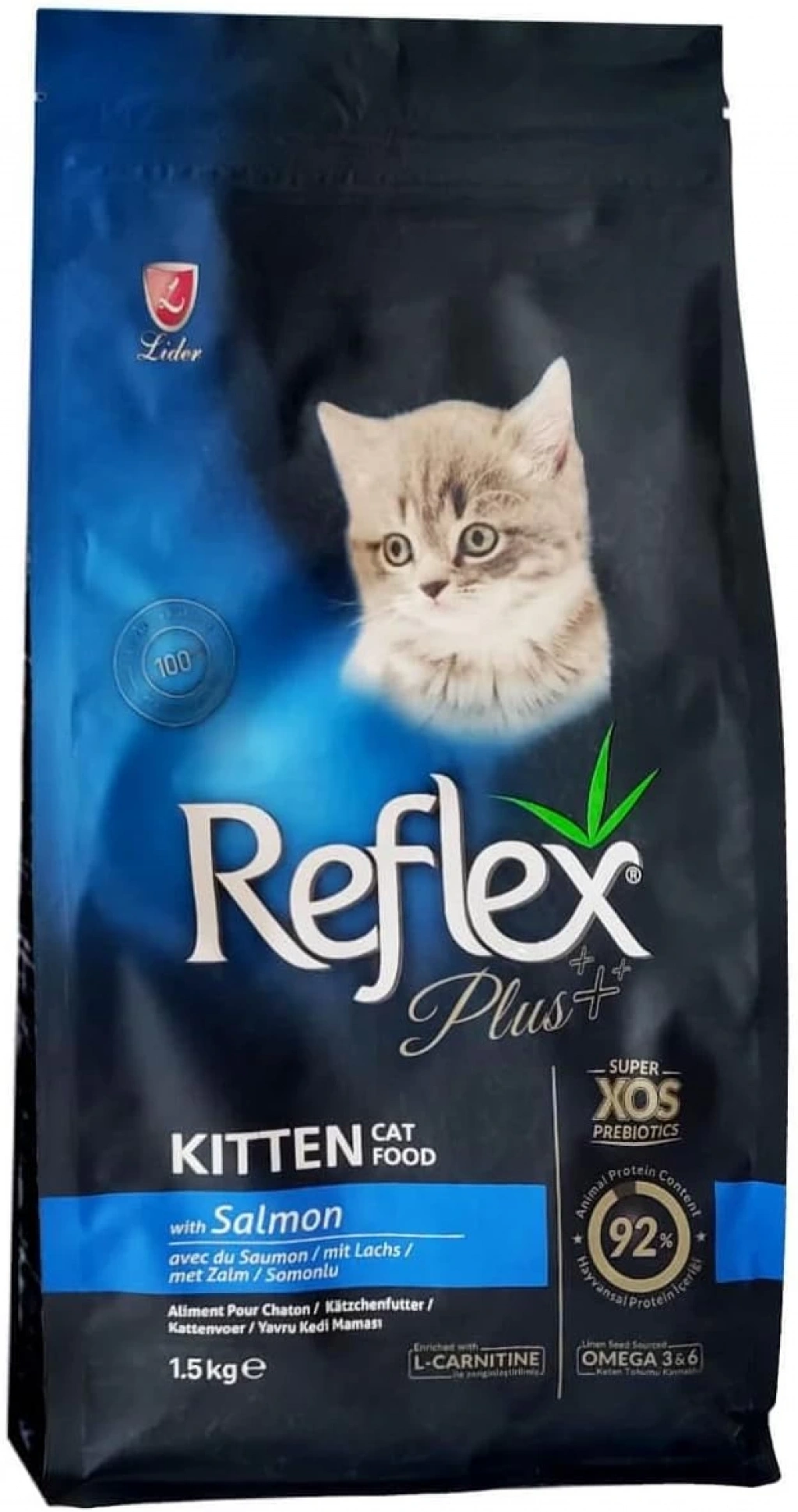 Reflex Plus Yavru Kedi Maması, 12 aylıktan küçük, tüm ırklara uygun olarak tam ve dengeli formüle edilmiş, somonlu süper premium kuru yavru kedi mamasıdır. Reflex Plus Kitten, tüm ırklardan yavru kediler için, günlük beslenme ihtiyaçlarını karşılamak üzere özenle formüle edilmiş tam ve dengeli, somon proteini içerir. İçerdiği protein miktarının %92'si hayvansal içeriklerden elde edilmektedir.