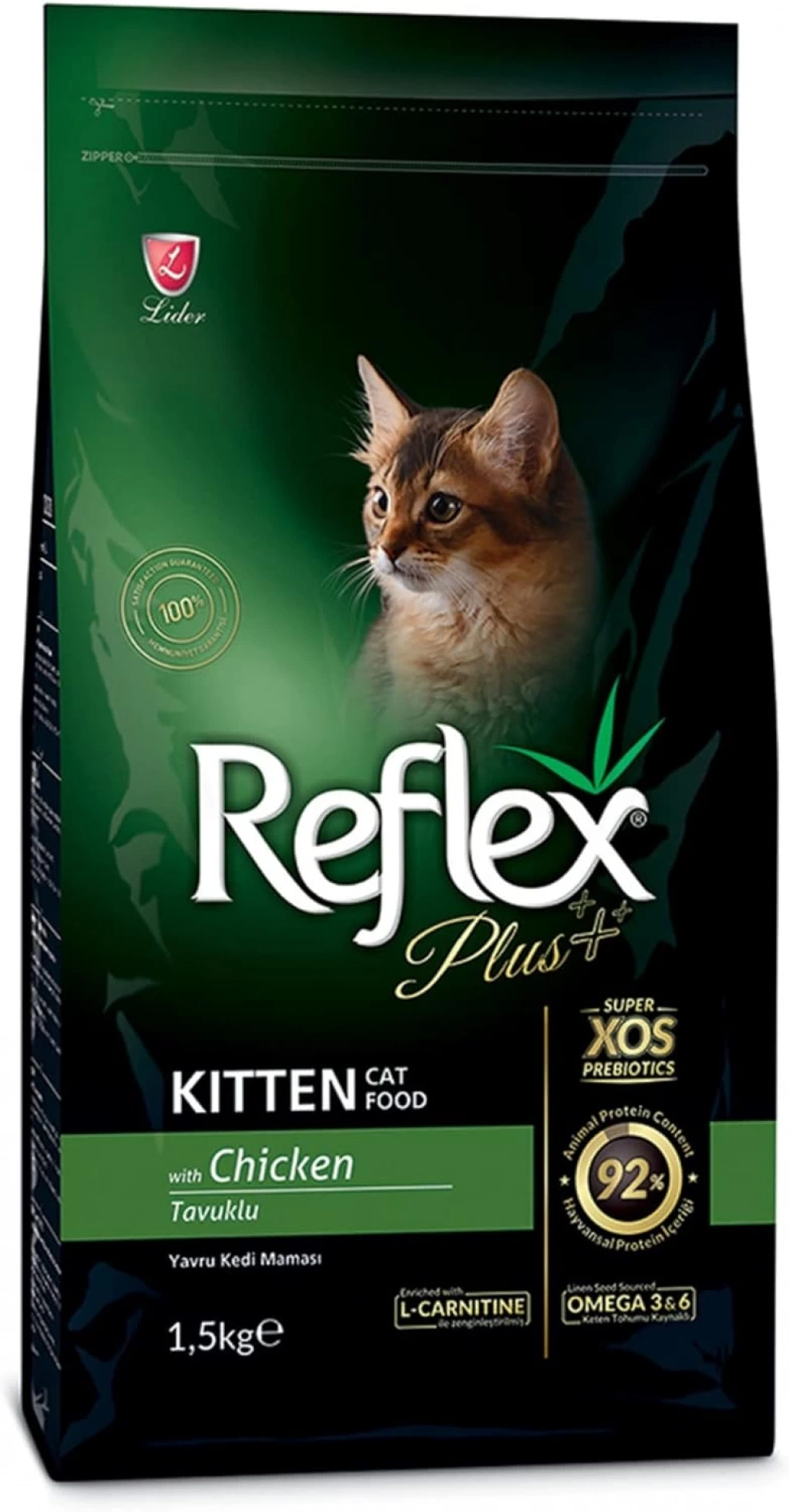 Reflex Plus Kitten, tüm ırklardan yavru kediler için, günlük beslenme ihtiyaçlarını karşılamak üzere, özenle formüle edilmiş tam ve dengeli, tavuk proteini içerir.