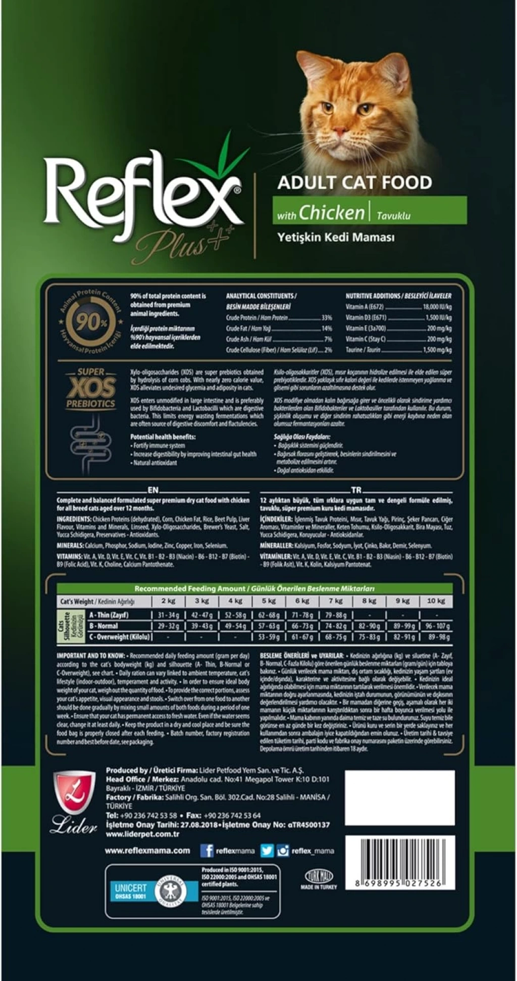 Reflex Plus, kedinizin sağlığını en üst seviyede tutmak amacıyla, cilt sağlığını destekleyen omega yağ asitleri ve çinko gibi bileşenleri de içermektedir. Bu sayede, kedinizin tüyleri parlak ve cildi sağlıklı kalır. Aynı zamanda, içeriğindeki ksilo-oligosakkarit ve bira mayası gibi bileşenler, kedinizin sindirim sistemini destekler ve bağırsak florasını iyileştirir. Reflex Plus'ın tüm bu özellikleri, kedinizin uzun ve sağlıklı bir yaşam sürmesine yardımcı olur.