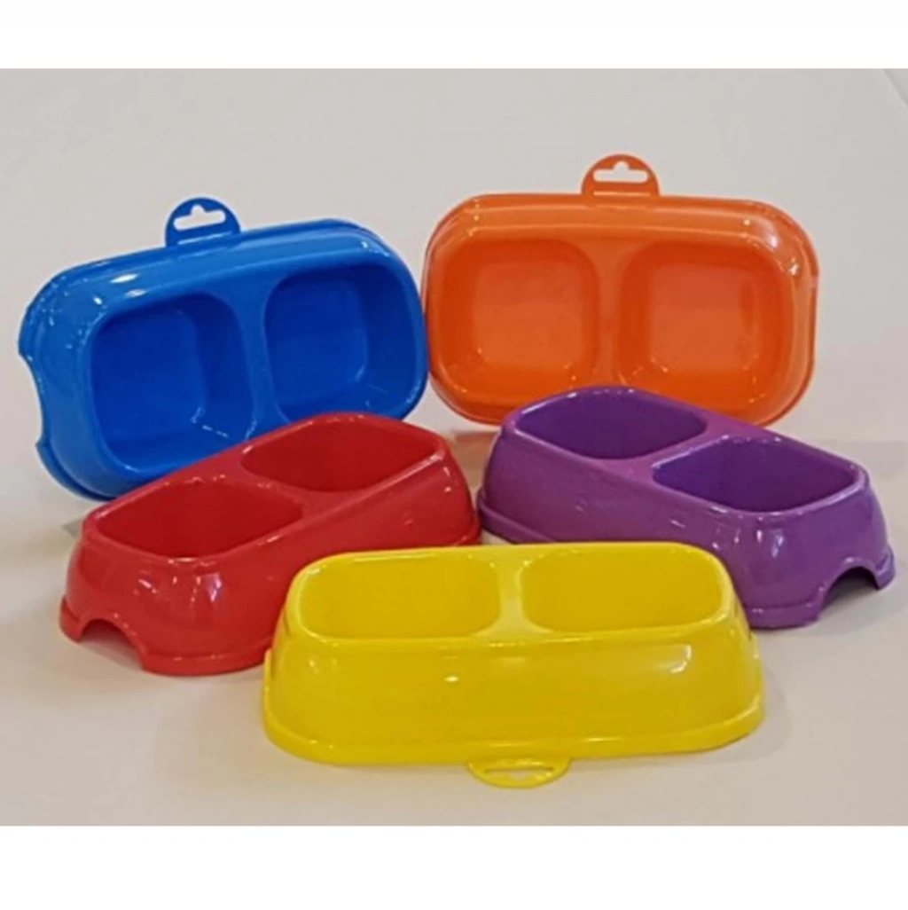 Renkli Kare Mama Kabı Çiftli Plastik Küçük