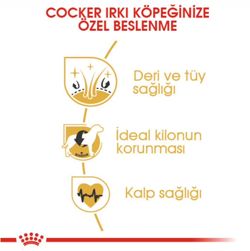 12 ay 7 yaş arası köpekler için ideal olan royal canin cocker spaniel 25 3 kg köpek mamasının faydaları; sağlıklı deri & güzel tüyler, EPA & DH sayesinde, derinin bariyer rolünüderi kompleks desteklemeye yardımcı olur ve deri ile kulaklarda irritasyonu azaltır. Hodan yağı ve biotin ile tüylerin doğal güzelliğini ortaya çıkarır.
