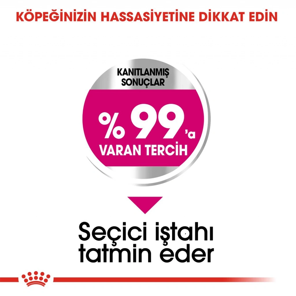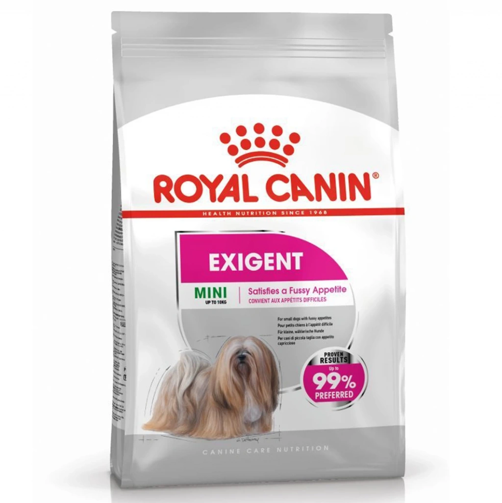 Yemek zamanlarında köpeğiniz yiyeceğinin aromasına, boyutuna ve dokusuna dikkat eder. Köpeğiniz yemeğini yemeyi reddettiğinde yalnızca istediği ödül mamaları değil eksiksiz şekilde tüm gıdasını almasını sağlamak için en zor beğenen köpeklerin bile karşı konulamaz bulacağı sağlıklı ve besinsel açıdan eksiksiz bir gıdaya ihtiyacınız var. Ağırlığı 10 kga varan ve zor beğenen köpekler için uygun olan ROYAL CANIN Exigent Mini, köpeğinizin sağlıklı bir yaşam için gereksinim duyduğu tüm gıdaları içerir.