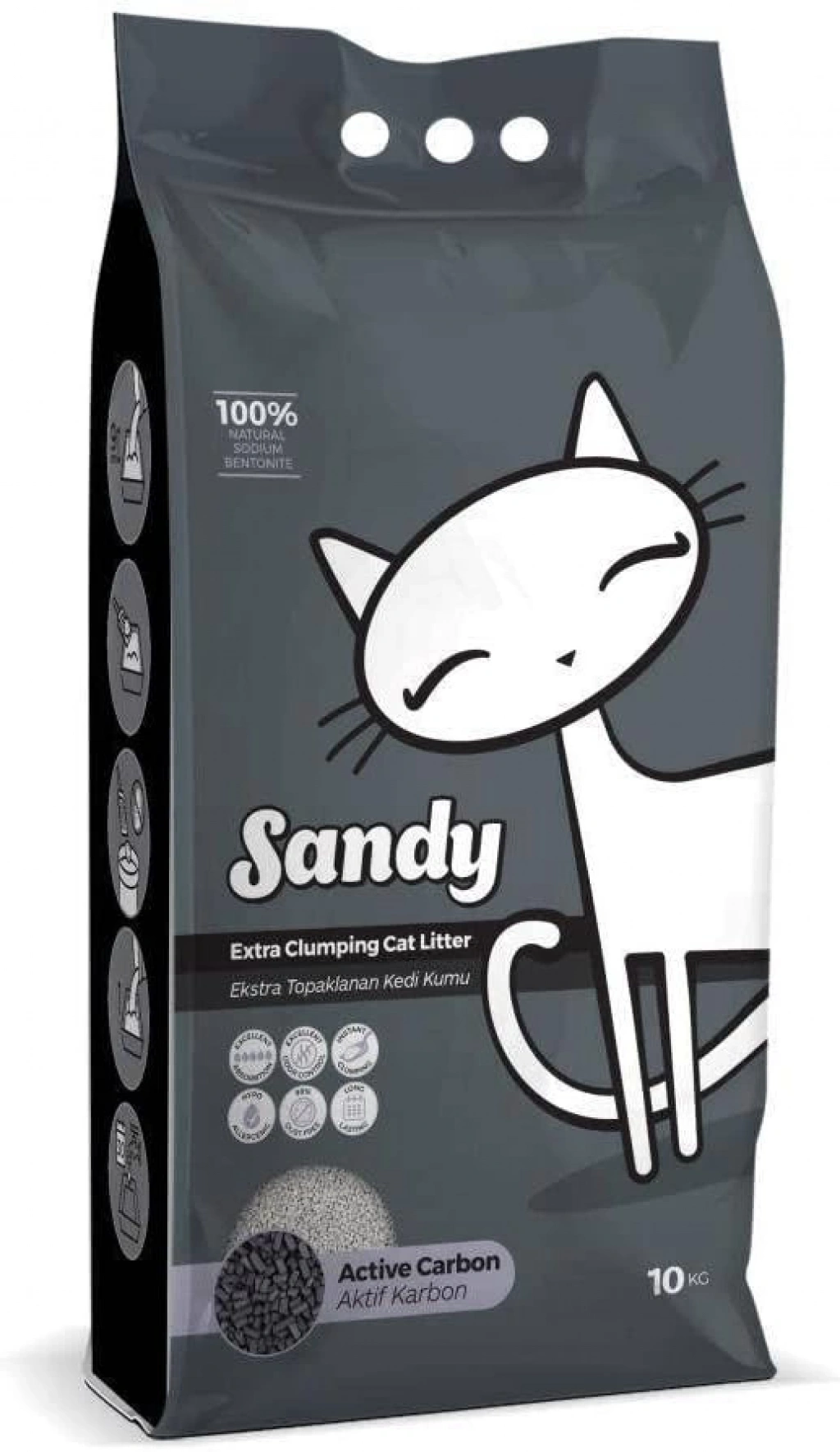 Sandy Aktif Karbon Ekstra Topaklanan İnce Taneli Kedi Kumu (10kg )