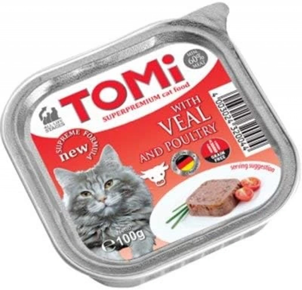 Tomi Pate Dana Etli ve Kümes Hayvanlı Yetişkin Kedi Konservesi 100gr