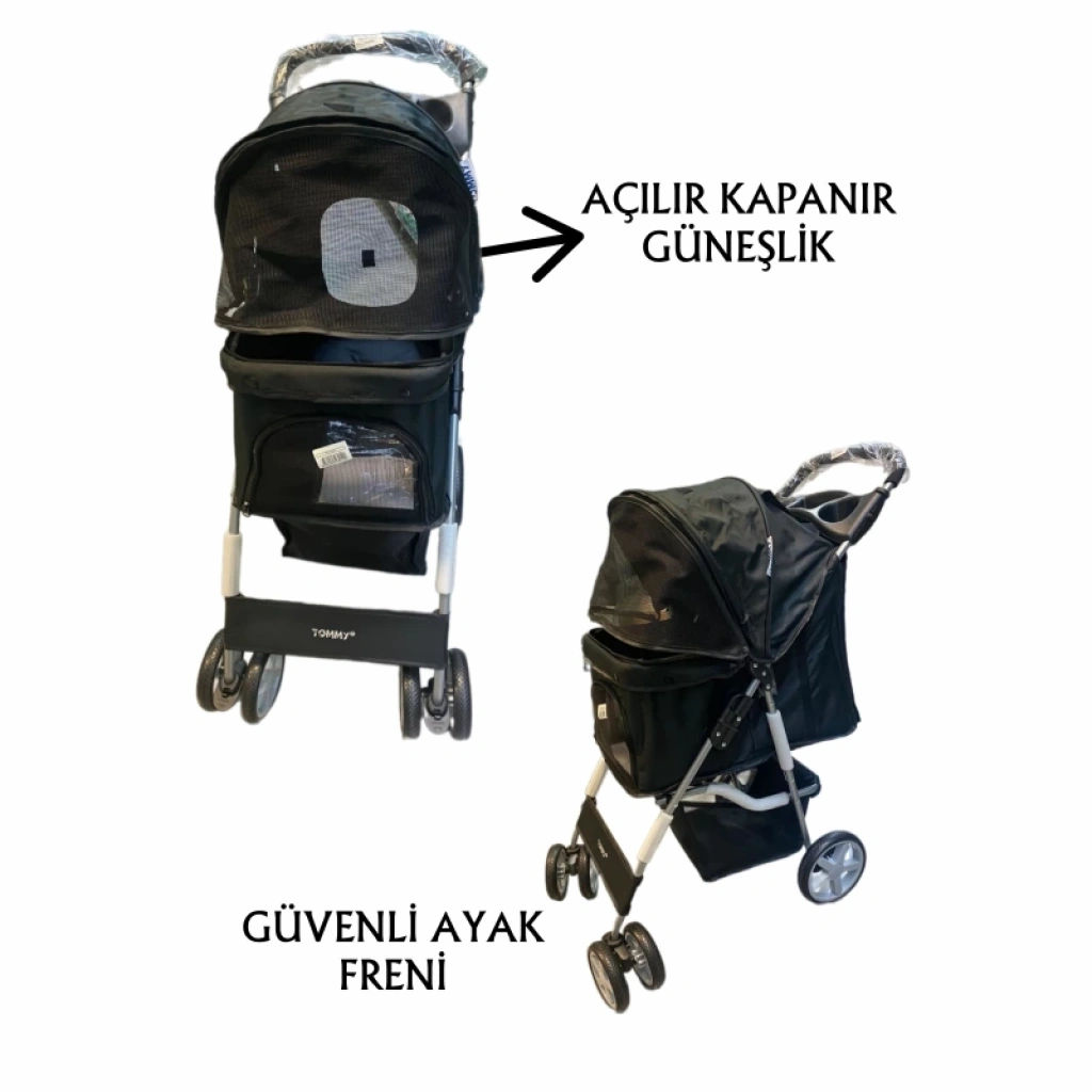 Tommy Evcil Hayvan Arabası 82*46*99 cm Siyah Max 15 Kg