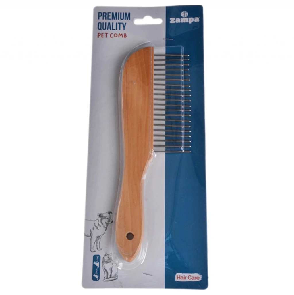 Zampa Ahşap Saplı Kedi ve Köpek Kıtık Açıcı Tarak, 17x3cm